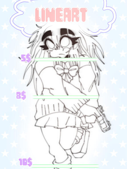 LineartHeadshot: 5$Half body: 8$Full body: 10$